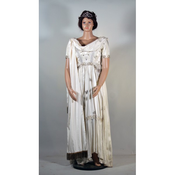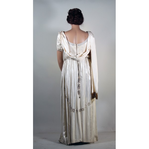 Ce costume, ancien, restauré dans notre atelier, est une tenue de dame empire pour un bal.