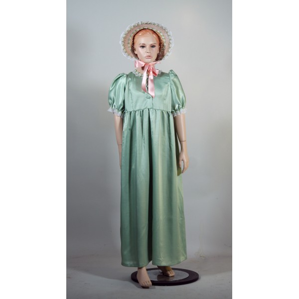 Ce costume créé dans notre atelier est une tenue de fillette empire inspiré d'un modèle de l'époque.